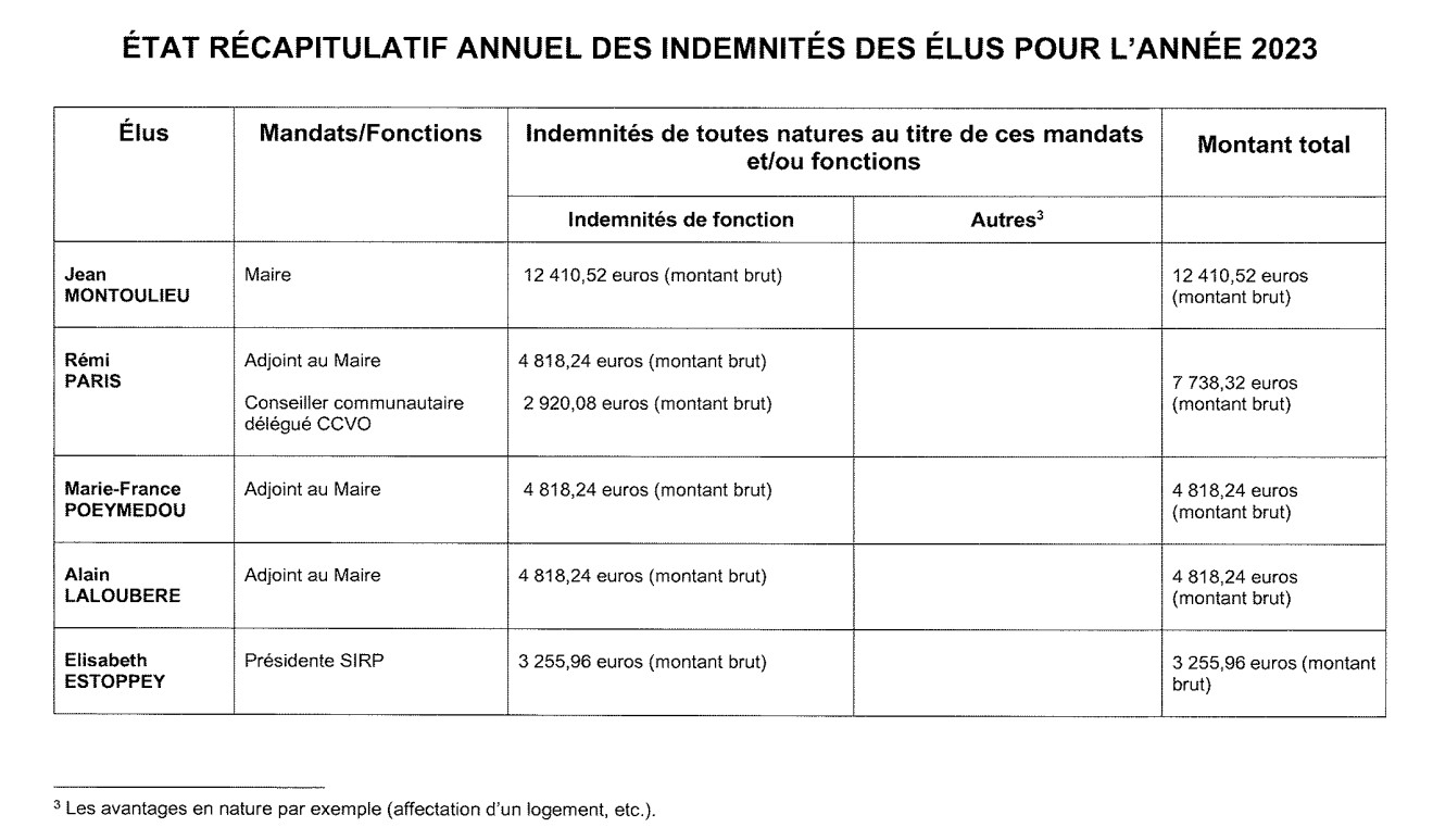 - Etat récapitulatif annuel des indemnités des élus de la commune