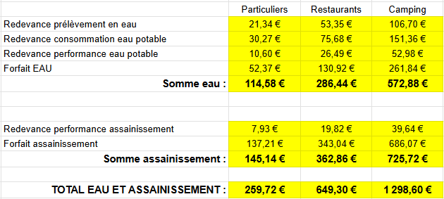 - Le tarif de base est fixé par l’Agence de l’Eau Adour-Garonne ;